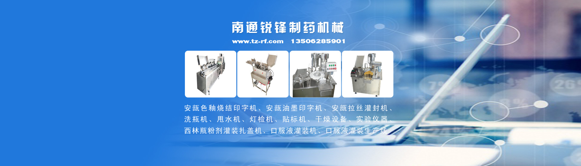公司主要產(chǎn)品有:安瓿色釉燒結(jié)印字機、安瓿油墨印字機、安瓿拉絲灌封機、西林瓶粉劑灌裝機、洗瓶機、安瓿甩水機、燈檢機、貼標機、口服液灌裝機、口服液灌裝生產(chǎn)線、制藥機械、干燥設(shè)備、實驗儀器等,并可根據(jù)客戶要求非標定制生產(chǎn)。產(chǎn)品廣泛用于制藥、食品、保健品、化妝品等行業(yè)。